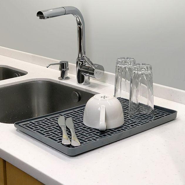 Сушарка оснащена зручним піддоном, що забезпечує рівномірне стікання води. Невеликі бортики дозволяють утримувати вологу і зайві краплі не потрапляють на робочу поверхню.
